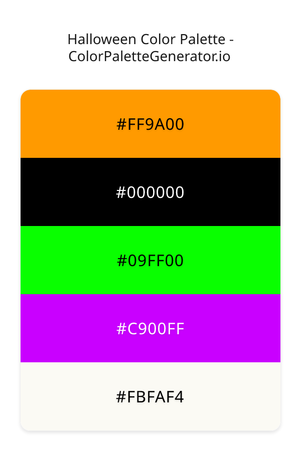 To get the most out of the Halloween palette, designers can experiment with complementary colors and pairing suggestions to create unique and captivating color combinations. For example, pairing the orange tone with the soft, creamy shade of FBFAF4 can create a beautiful contrast that adds depth and visual interest to the design. Similarly, combining the electric green shade with the violet tone can produce a bold and energetic effect that is sure to grab attention. By following design best practices, such as balancing warm and cool tones, using color gradients, and experimenting with different textures and patterns, designers can unlock the full potential of the Halloween palette and create designs that are truly unforgettable.