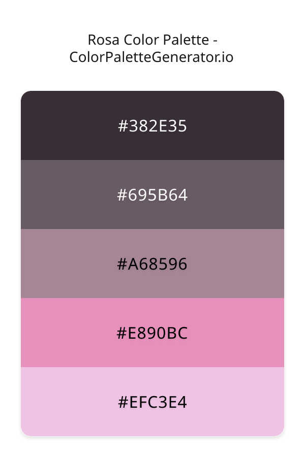The Rosa color palette is a masterful blend of warm, rich hues that evoke feelings of elegance and sophistication, perfect for designs that require a touch of femininity and modern flair. At its core, this palette is a thoughtful composition of gray, pink, and plum tones, each one expertly balanced to create a sense of depth and visual interest. As the colors unfold, they reveal a nuanced narrative of warmth and refinement, making Rosa an ideal choice for designers seeking to craft a distinctive and captivating visual identity.
